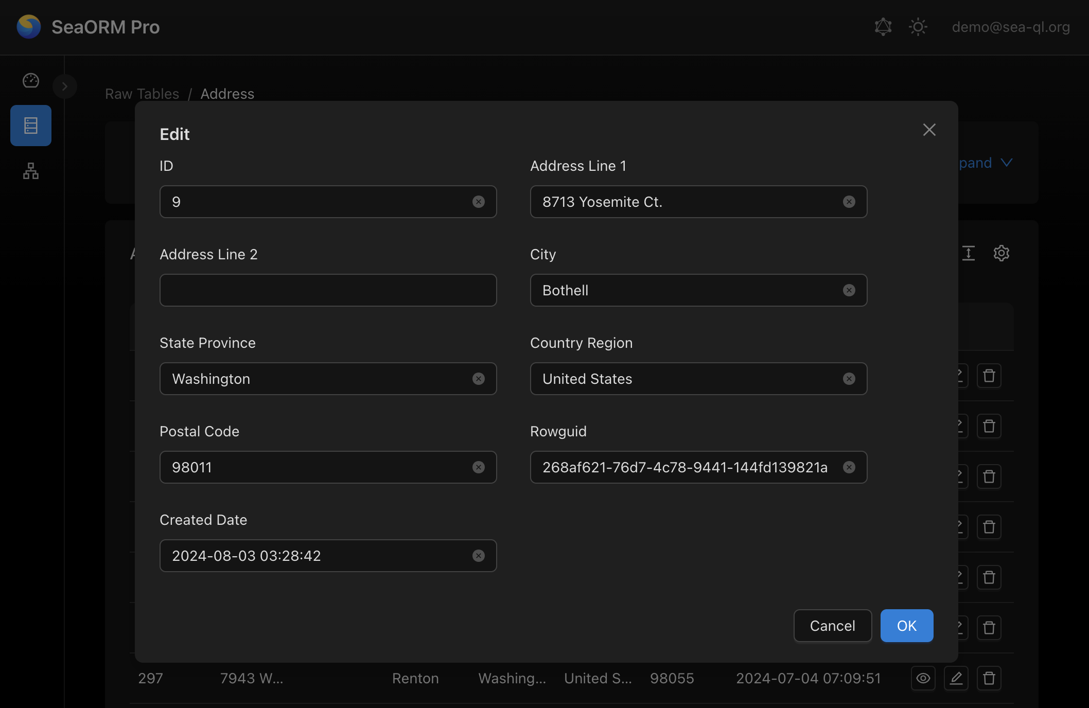 SeaORM Pro provides a full CRUD interface for your SeaORM models.
