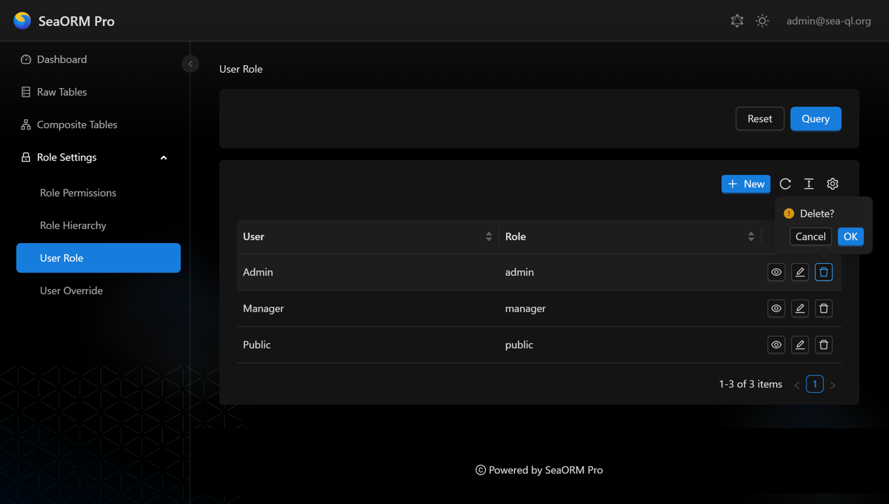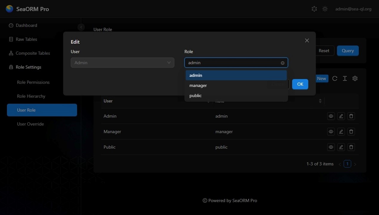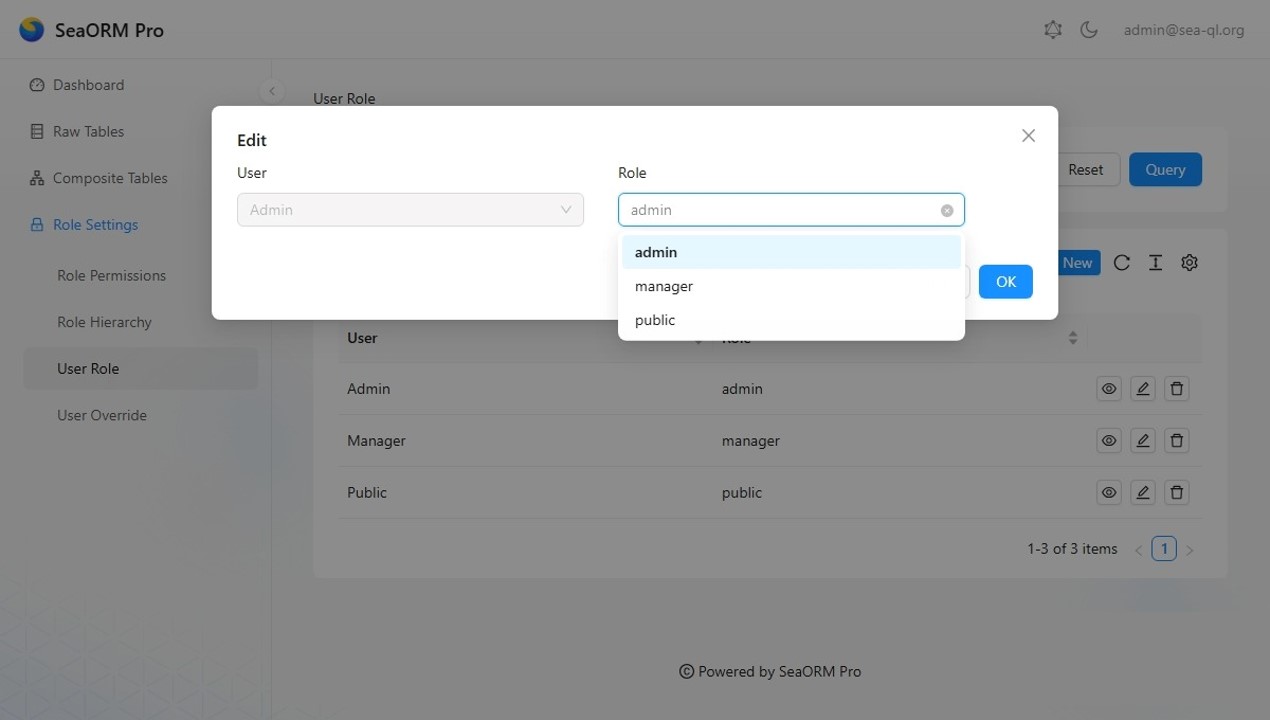 Role Based Access ControlUser RoleOn this pageUser Role User has a 1-1 relationship with role, meaning each user can only be assigned at most 1 role. Add User Role Update User Role Delete User Role